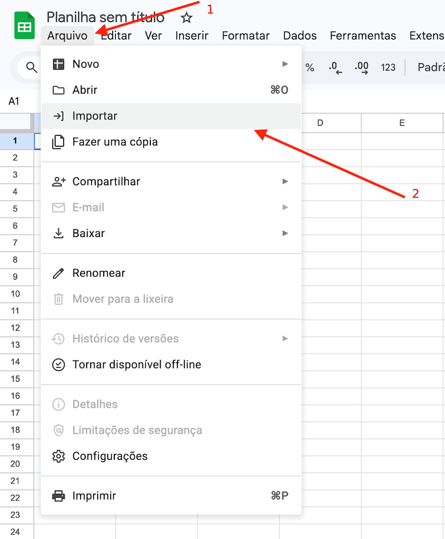 Segunda etapa: Importar o arquivo no Google Planilhas